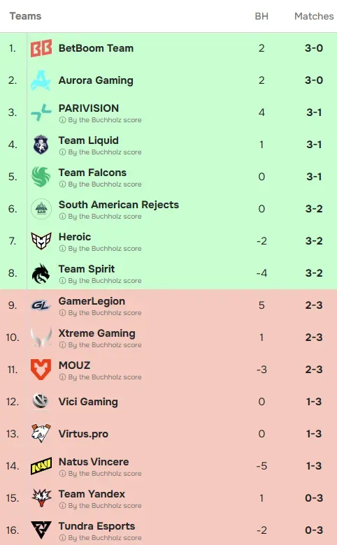 The Swiss stage in Bucharest delivered its share of shocks before the dust settled. Tundra Esports and Team Yandex, two of the pre-event favourites, are already on their way home. The eight teams entering the double-elimination bracket have each earned their spot through a demanding best-of-three gauntlet, and the format now shifts to a single-loss tolerance environment where every pick matters. BetBoom Team and Aurora Gaming led the group stage with 3-0 records. PARIVISION, Team Liquid, and Team Falcons followed through round four. The final three playoff spots from today's round five matches are expected to go to HEROIC, South America Rejects, and Team Spirit.